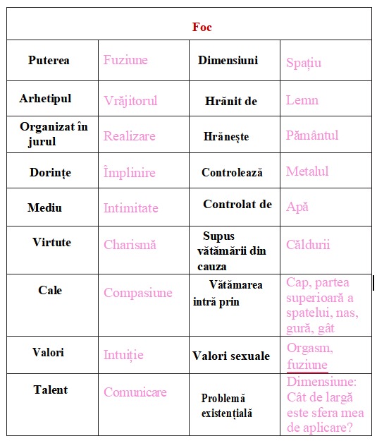 Puncte cheie ale arhetipului FOCULUI