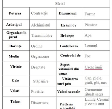 Virtuos și integru, se bucură de ritualuri și ceremonii. Perfecționist și rafinat, arhetipul metalului este metodic, are discernământ, ordonat, calm, rezervat, asumat.