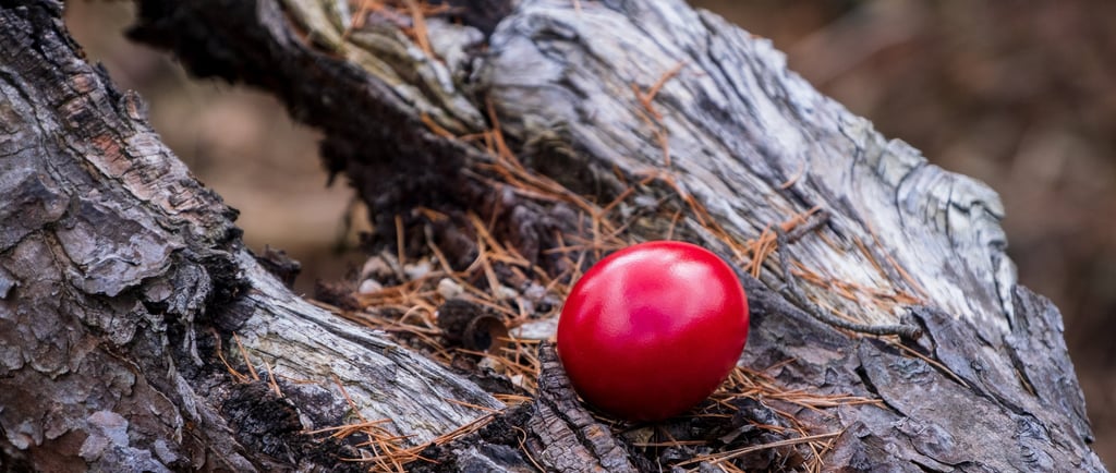 Mormântul Părăsit: Coaja tare a oului simbolizează mormântul pecetluit al lui Iisus, iar spargerea ei reprezintă biruința vieții asupra morții.